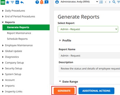 It is recommended that administrators run reports to validate timecards are correct before proceeding to the approval step. To access navigate within ITA on the left navigation tree to Reports > Generate Reports.