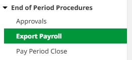 - In the main navigation menu, under End of Period Procedures select Export Payroll.