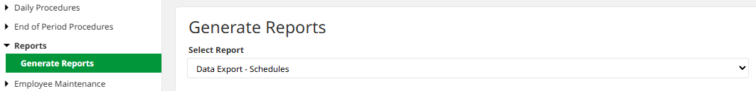 This step is only needed if your Time and Attendance system has been used for schedule management. The schedules export report exports all data related to employee schedules.